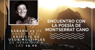 Este próximo sábado 23 de enero, junto al periodista Juanjo Marqués, Montserrat Cano realizará un breve recorrido por su obra poética y reflexionará sobre la importancia de La Gomera como elemento de inspiración literaria en su escritura. La autora reside desde hace años en Vallehermoso y afirma haber encontrado en La Gomera el lugar ideal para trabajar. En el año …