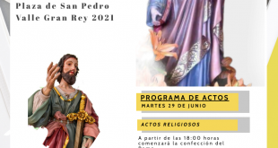 El Ayuntamiento de Valle Gran Rey celebra la festividad este martes día 29 de junio en la Plaza de San Pedro del municipio. La concejalía de Fiestas y Cultura del Ayuntamiento de Valle Gran Rey ha programado para este martes 29 de junio a las 20:00h. la solemne eucaristía en honor a San Pedro y San Pablo que se realizará …