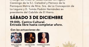 El pregón, que comenzará a las 19:00 horas, estará a cargo del Rvdo. D. Jesús Manuel Gil Agüin y de D. Tomás Padrón Hernández El Centro Cultural de Valle Gran Rey será escenario, este sábado día 3 de diciembre a partir de las 19:00 horas, de la celebración del acto oficial del Pregón de la VIII Bajada de Nuestra Señora …